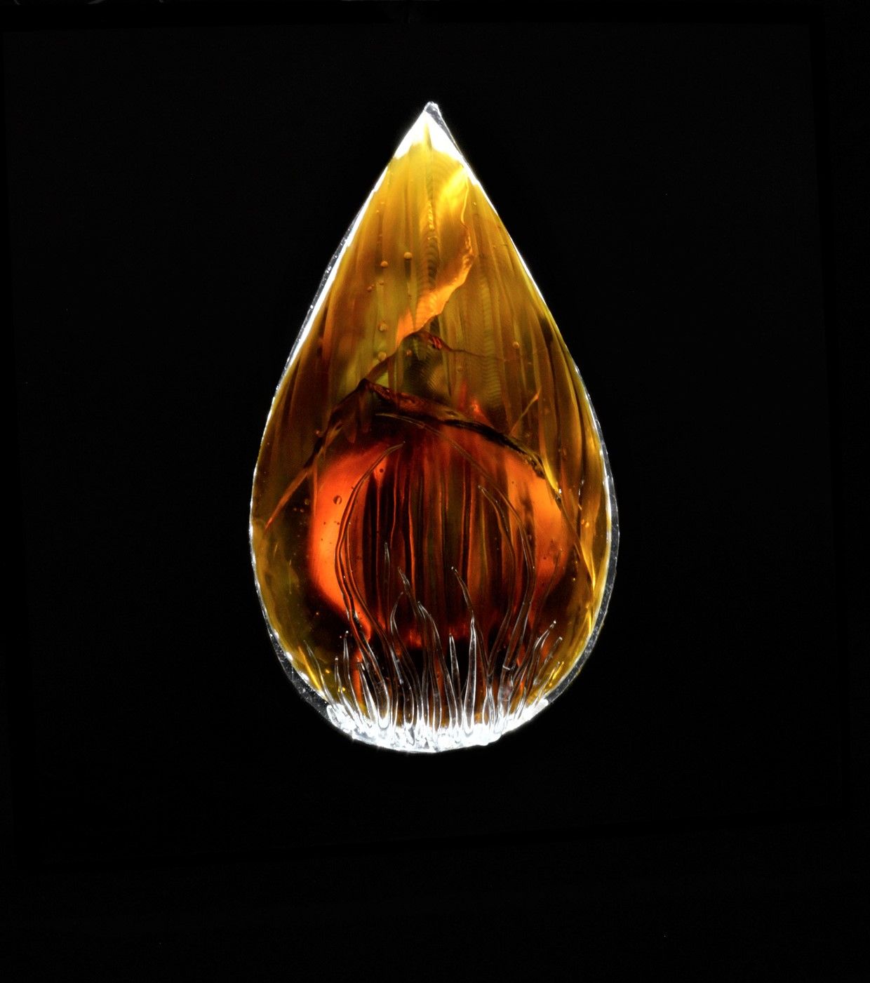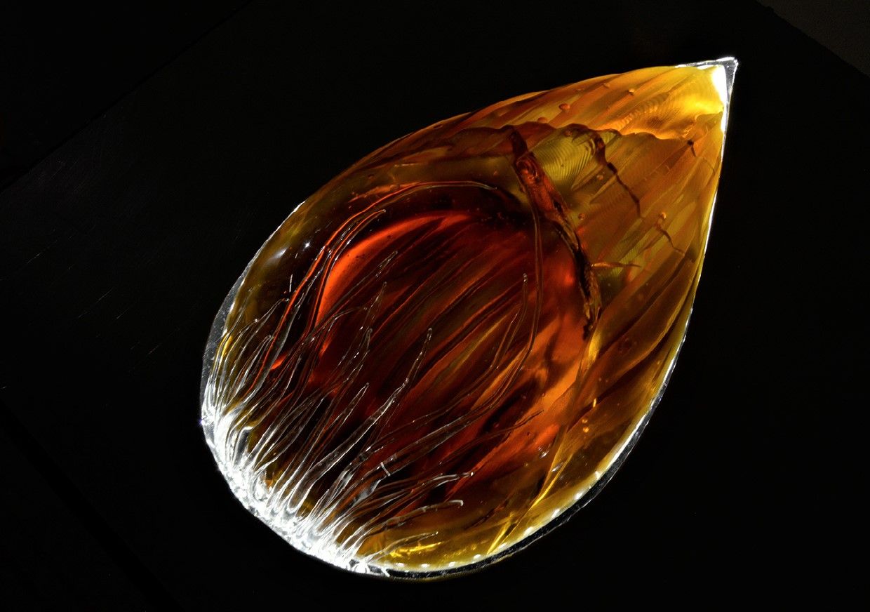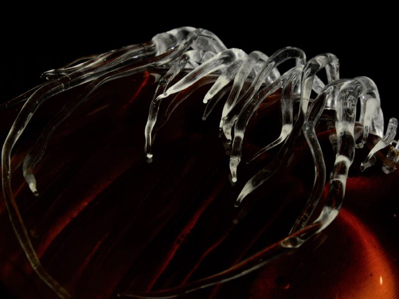 cast glass, flameworked details, wooden and metal frame, 35x25 cm (without frame)