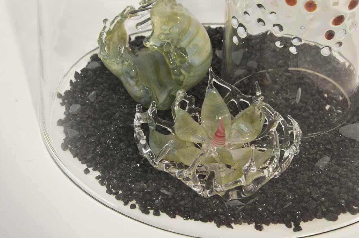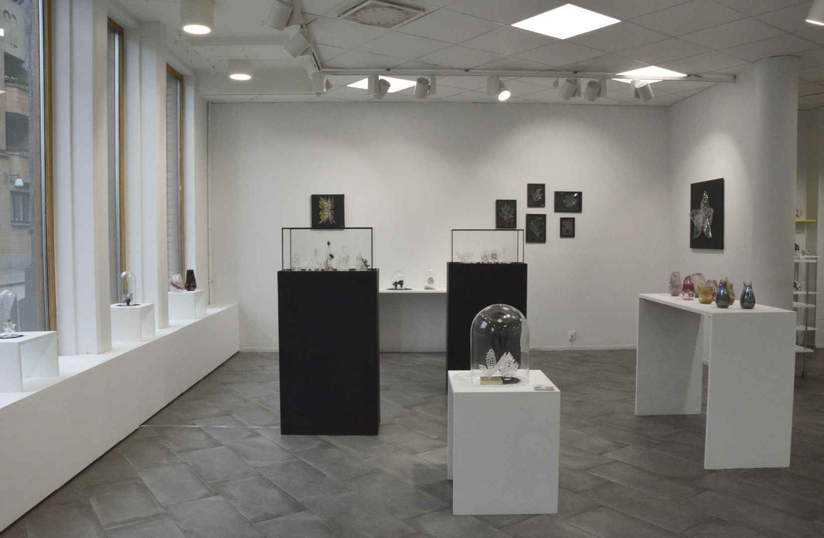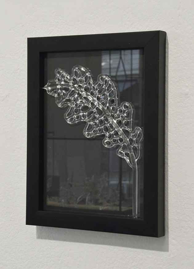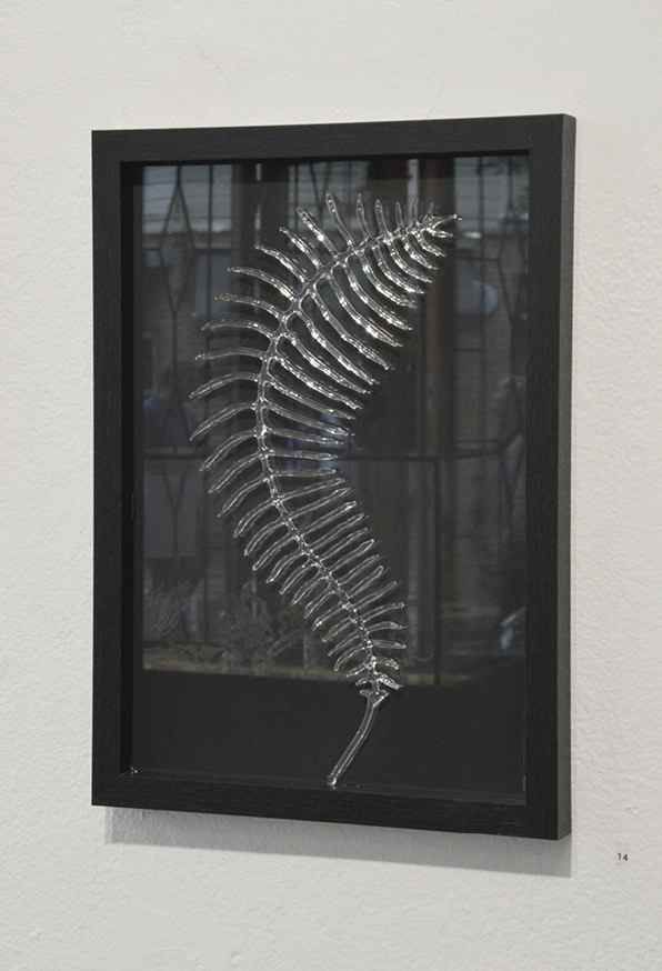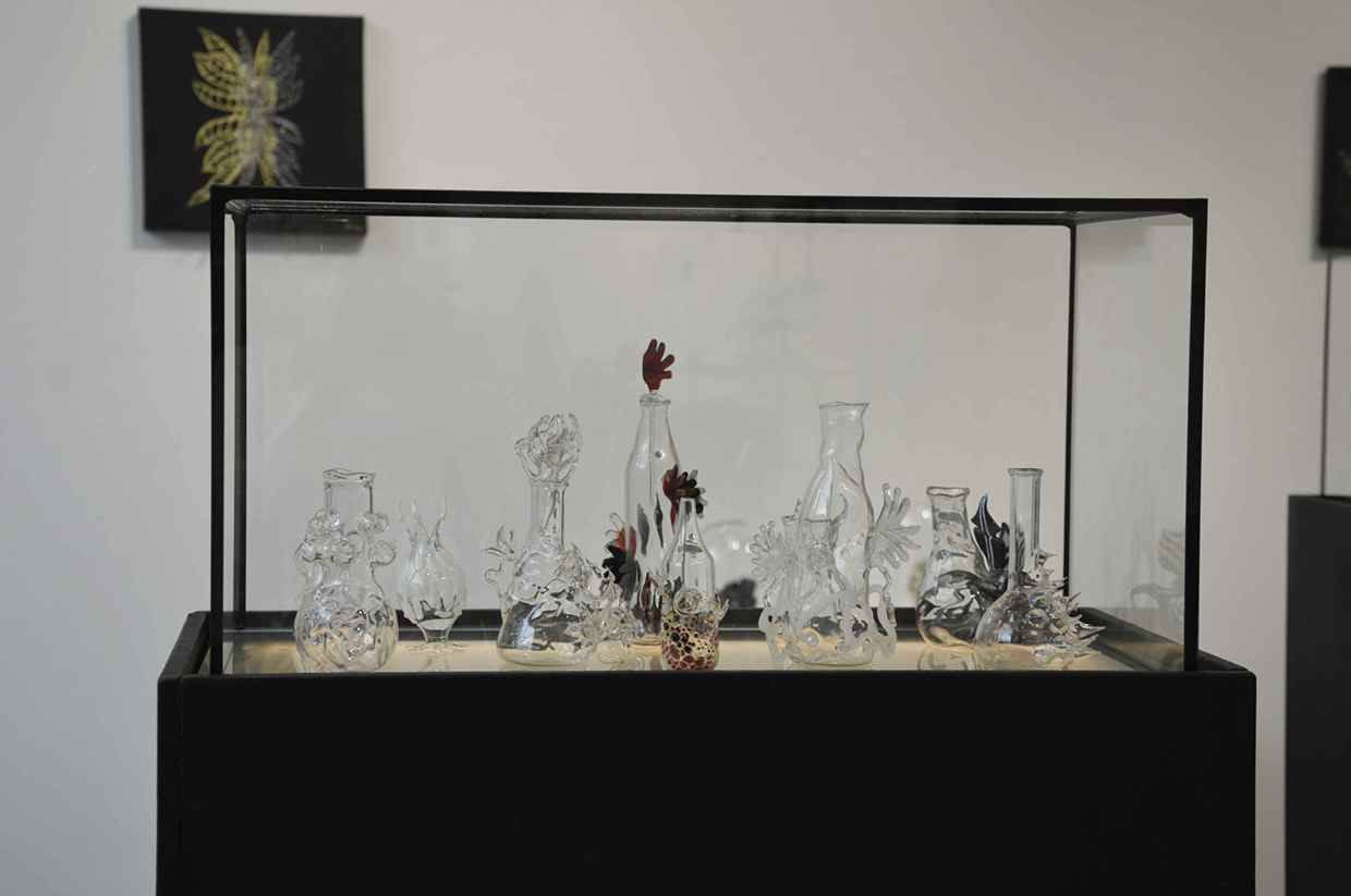 The creatures have stepped out of their comfortable habitats for and travelled to Gothenburg to be featured in my first solo show. I presented a reconceptualization of my existing body of work in flameworked borosilicate glass sculptures (Imaginature) with some additional extra works made with networking. The show's highlights were two wallpieces specifically created for this occasion: Orchidea Fortuna (Orchid of Luck) and Aurea Mediocritas (Golden Balance), the orchid and the butterfly, but a series of framed networked leaves (Black Frames Series) were also tailored for the exhibition space.