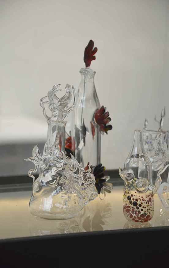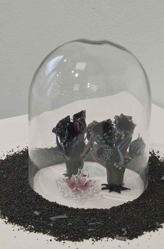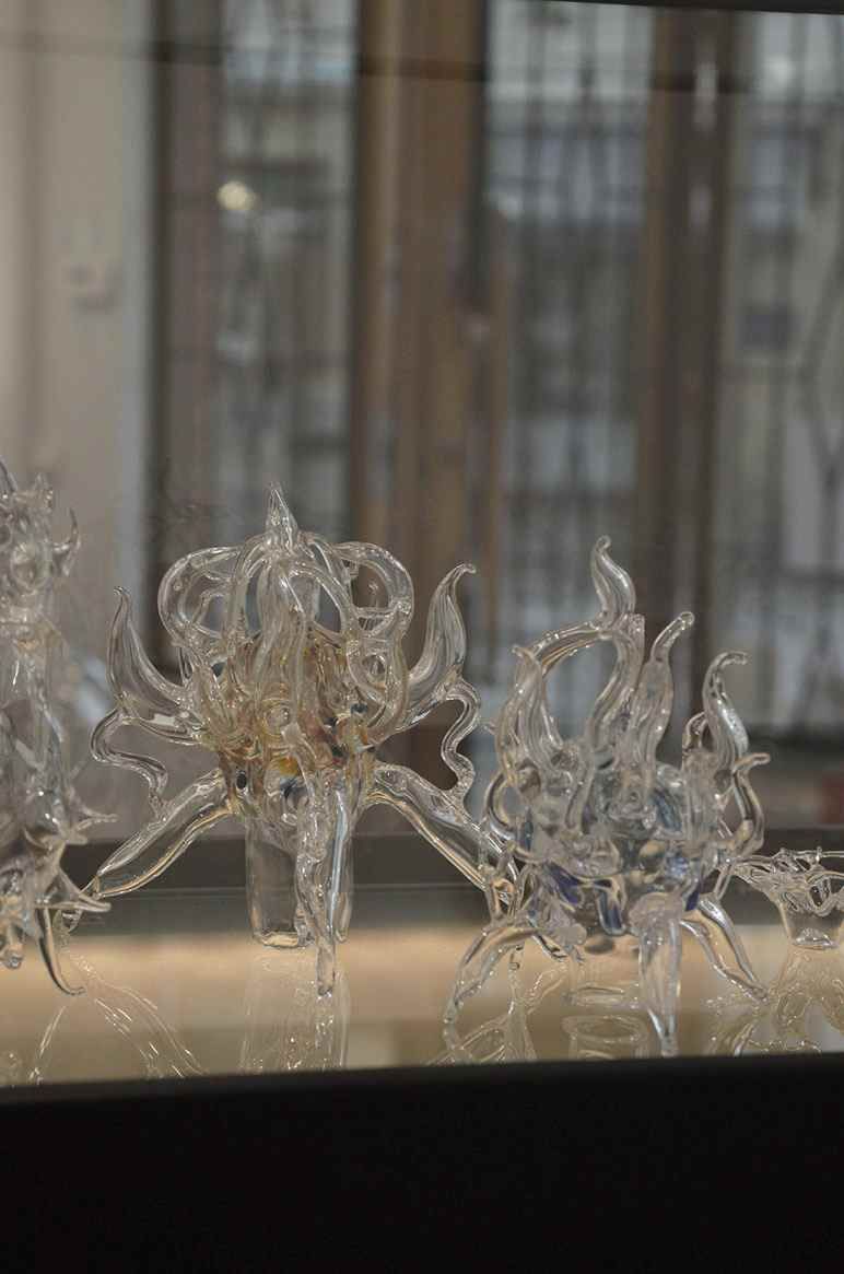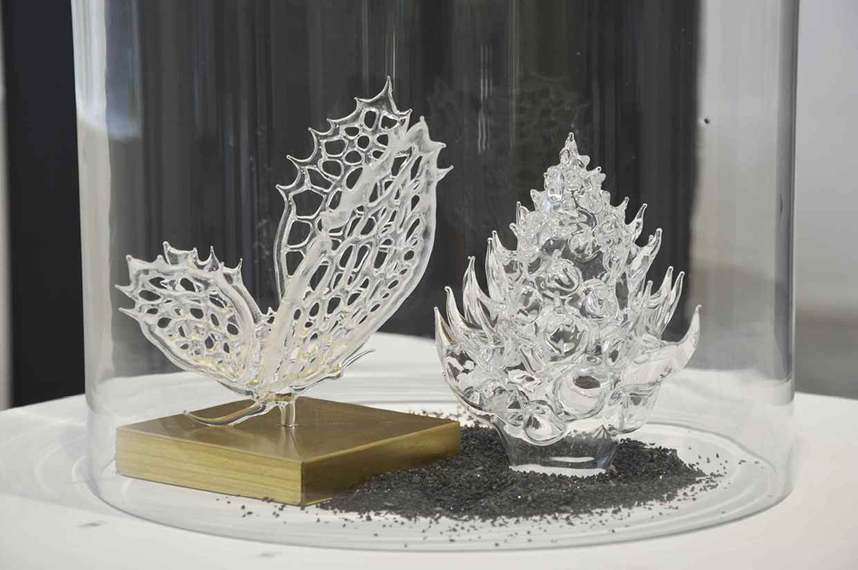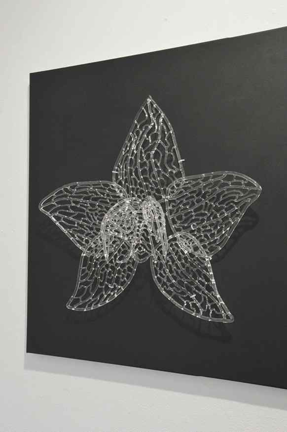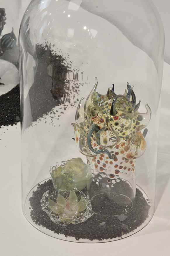 The creatures have stepped out of their comfortable habitats for and travelled to Gothenburg to be featured in my first solo show. I presented a reconceptualization of my existing body of work in flameworked borosilicate glass sculptures (Imaginature) with some additional extra works made with networking. The show's highlights were two wallpieces specifically created for this occasion: Orchidea Fortuna (Orchid of Luck) and Aurea Mediocritas (Golden Balance), the orchid and the butterfly, but a series of framed networked leaves (Black Frames Series) were also tailored for the exhibition space.